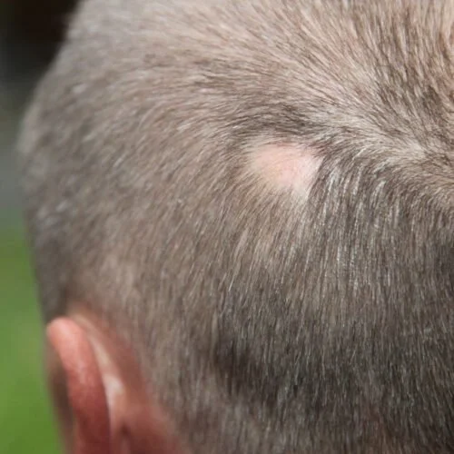 Es una enfermedad de causa desconocida que provoca una o varias zonas sin pelo, de distinto tamaño y número. Puede desencadenarse por infecciones, estrés, traumas emocionales, etc. Suele mejorar, aunque puede reaparecer y en casos graves causar pérdida total del cabello (alopecia total) o de todo el vello corporal (alopecia universal), de forma crónica. El tratamiento busca regenerar el cabello perdido.